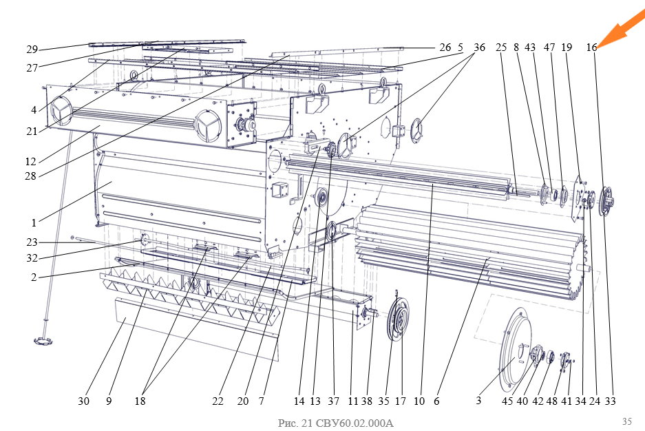 В компании "Агромаш" в Воронеже на складе доступные к заказу запчасти для сепаратора универсального высокопроизводительного СВУ-60 (производительность - 60 тонн/час).