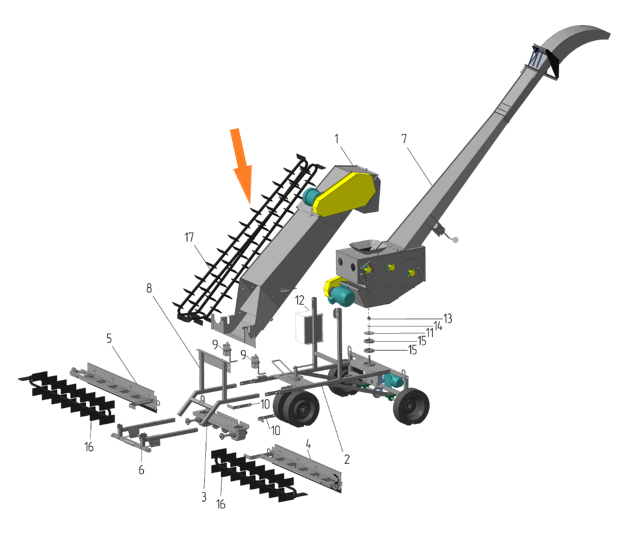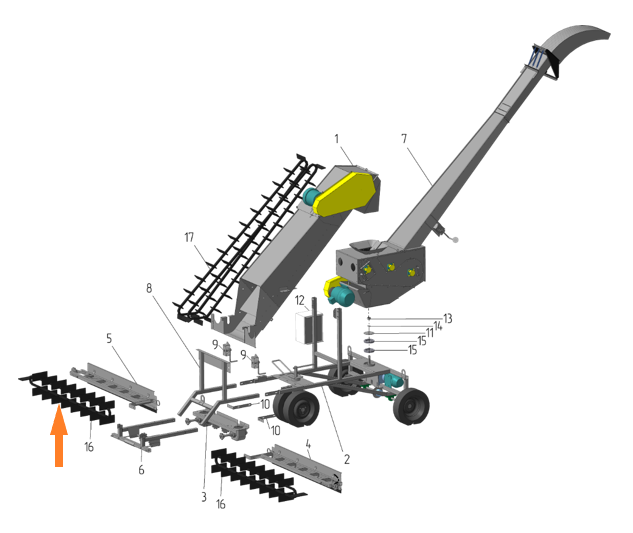 - Трубопроводы и переходники – элементы конструкции, обеспечивающие подачу зерна.