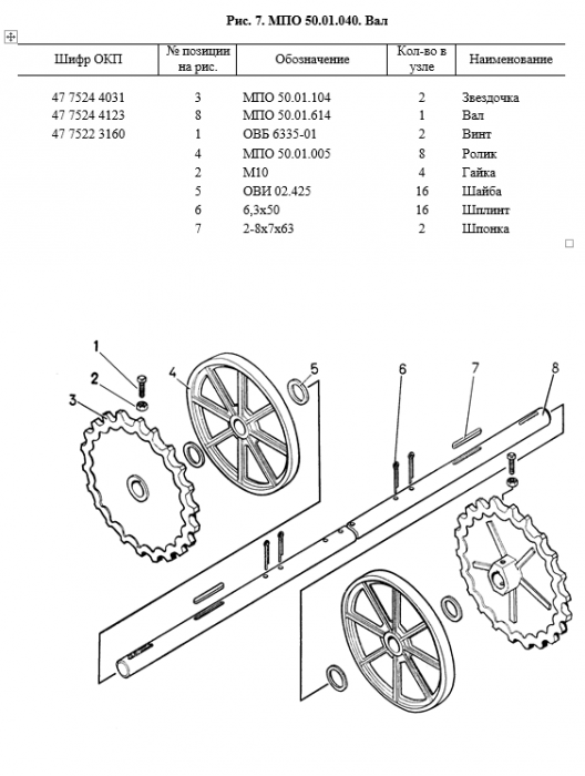 Вал ведомый в сборе МПО-50.01.040