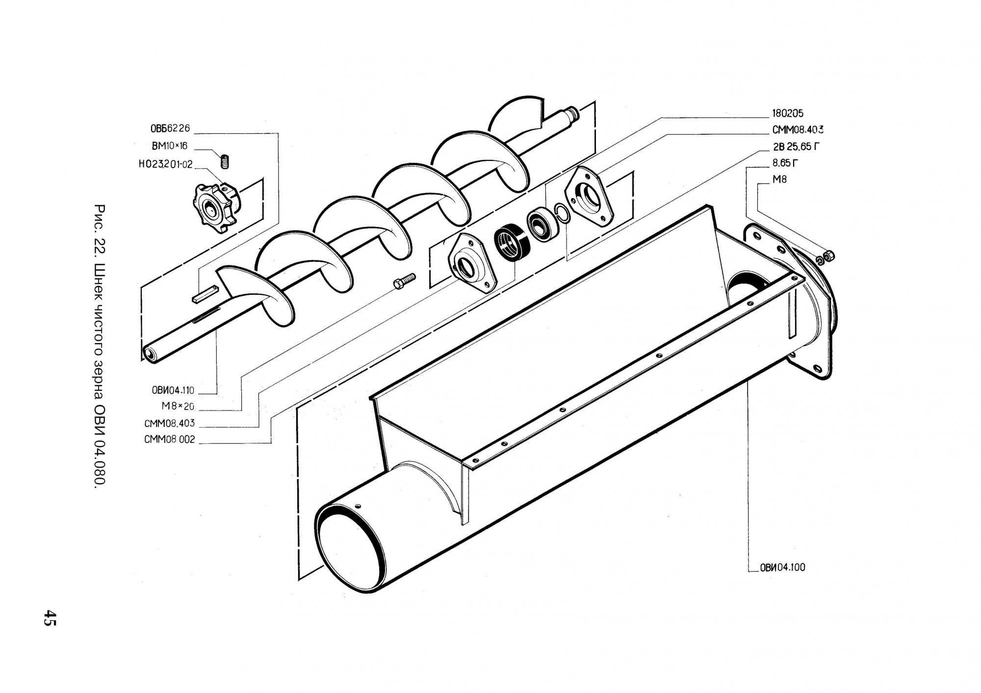 Шнек чистого зерна ОВИ 04.080-01 (ОВС-25) с кожухом