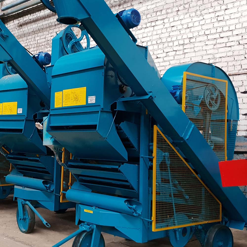 - Двойной режим работы: предварительная очистка — до 25 т/ч, первичная очистка семян — до 15 т/ч (при влажности до 16%)